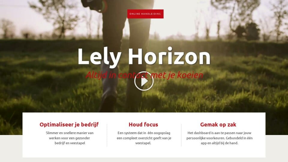 Je dient eerst ervoor te zorgen dat je registratie volledig is voltooid, daarna is pas het mogelijk om te starten met Lely Horizon.